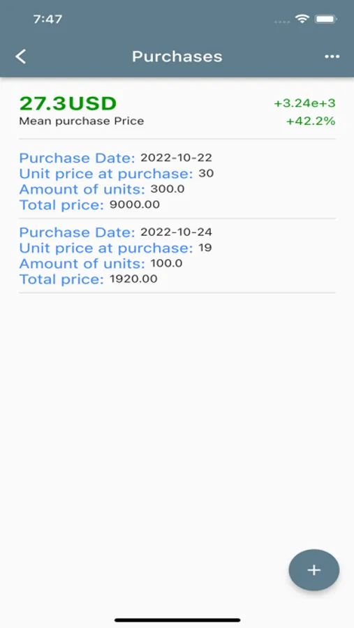 Purchases can also be saved in the app, so that the differences since purchase are displayed.