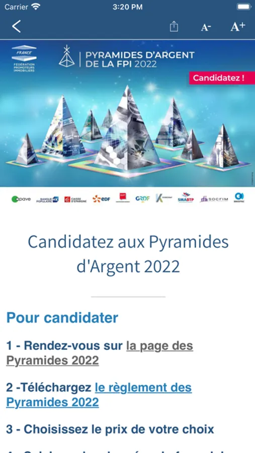Cette application vous permettra d'être informé en temps réel de toute l'actualité juridique, technique et social de la promotion immobilière.