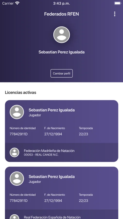 Con la aplicación oficial de la Real Federación Española de Natación, puedes ver todos tus datos como federado desde tu teléfono.