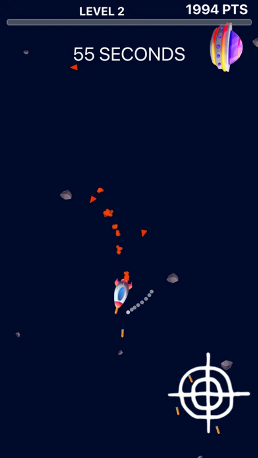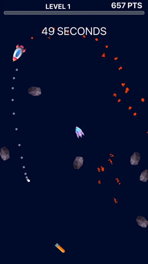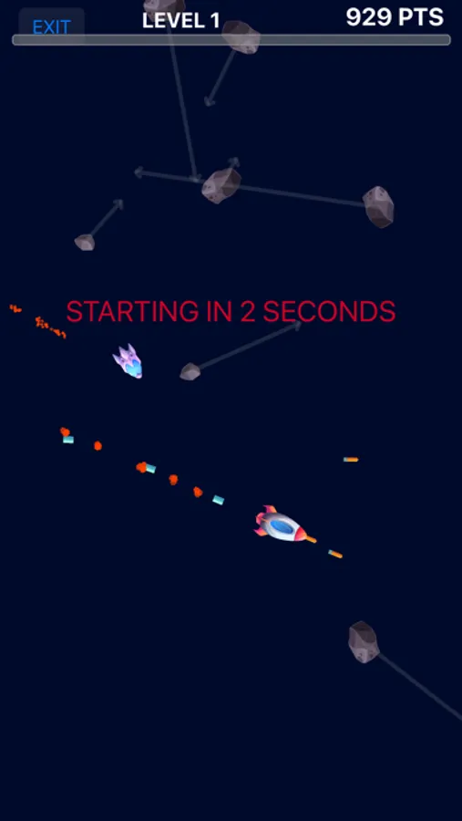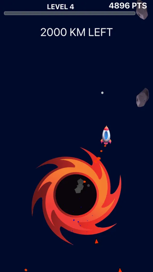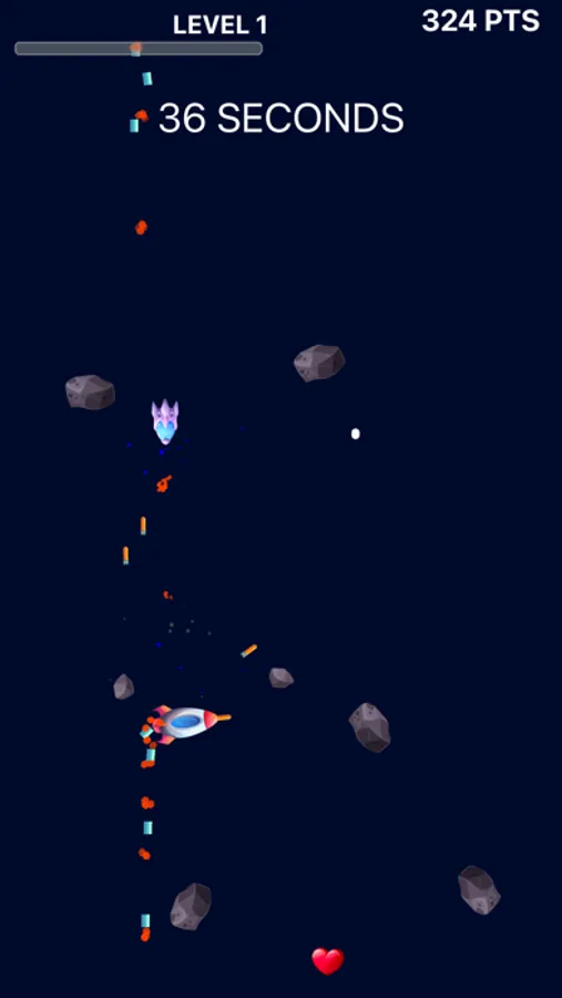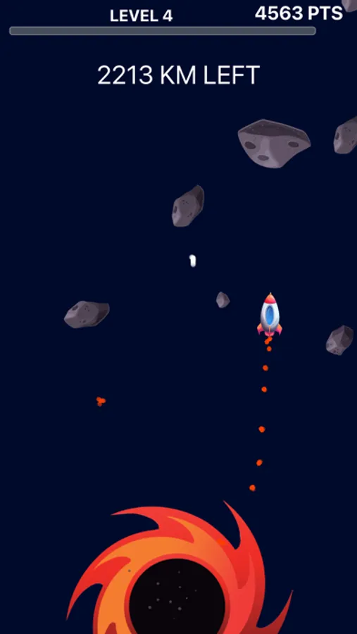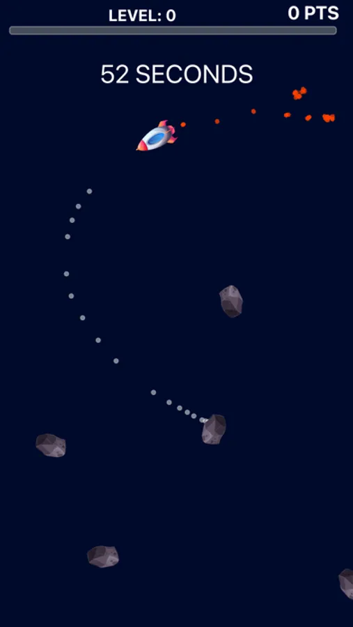 Your rocket moves with your finger on the screen. Once it has completed its route, it stops and gives you 3 seconds to think about your next move.