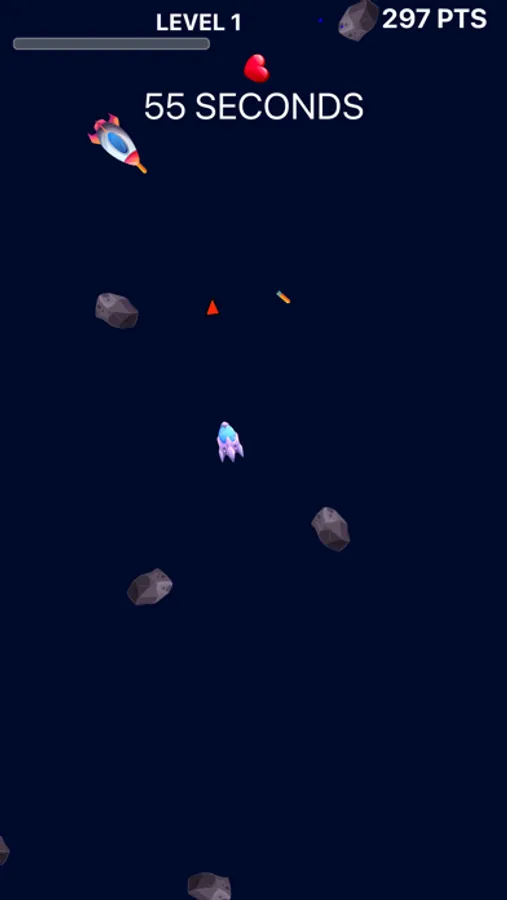 Three game modes: survive for a minute in an asteroid field, destroy as many asteroids as possible or reach the flag and escape the black hole.