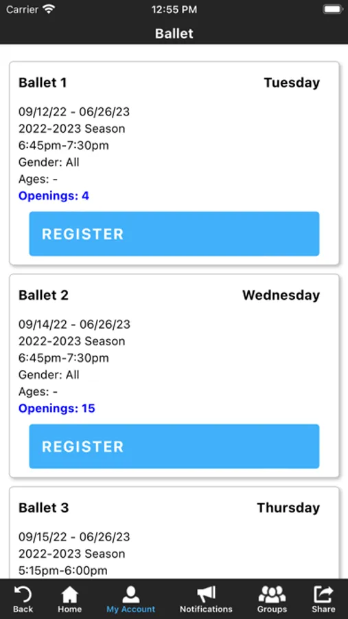 The ODC app allows you to manage your account with ease, view your schedule, and special events. You'll also receive important notifications about class changes, closings, registration openings, special announcements, and upcoming events.