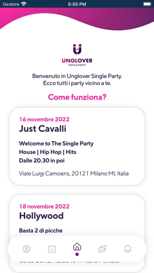 2 - Seleziona uno degli eventi presenti all’interno dell’app e prenotati per la serata.