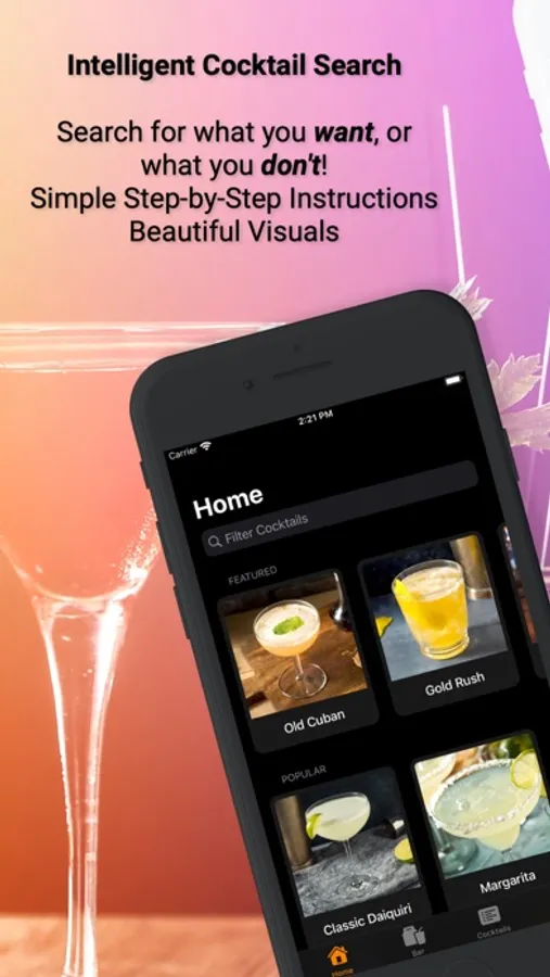 Vector Bar is the cocktail recipe app that makes mixology easy! Home bartenders and aspiring mixologists love how fast you can search cocktails and quickly find new drinks to make. With beautiful photos and recipes from top mixologists, Vector Bar sets the new standard in cocktail apps.