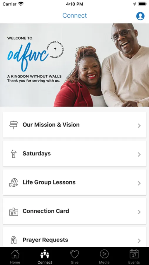 Connect and engage with the Open Door FWC app! You will be able to view upcoming events, support financially, read the bible, and more!