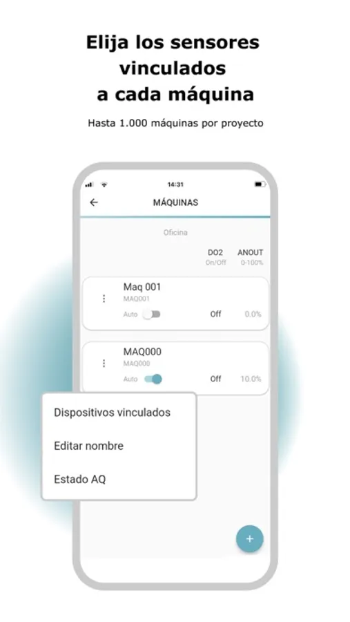- Elija los sensores vinculados a cada máquina, hasta 1000 máquinas por proyecto.