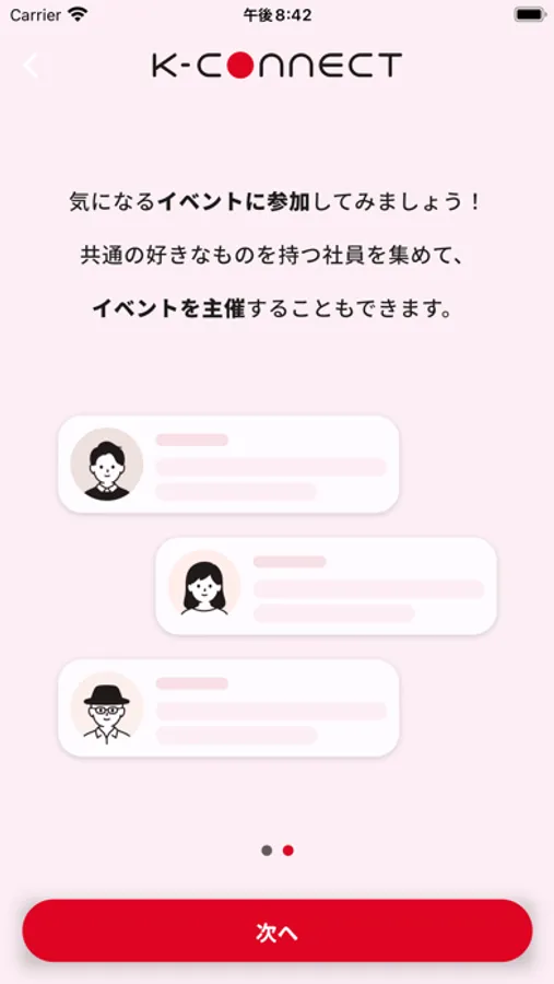 社内での人的交流を主体的にも受動的にも増加させていくことができるアプリとなっております。社内での交流関係を良好に発展させることで社員個々人が充実した生活を送ることを支援し、その結果仕事もスムーズに進むようになることをサポートします。