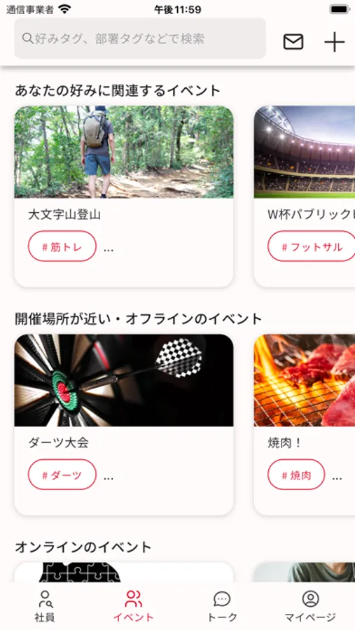 なお、イベントについても自分の趣味や関心に近いイベントをレコメンドしてくれる機能があるため、スムーズにイベントを探すことができます。また、イベントに参加する回数が増えれば増えるほど、レコメンドに必要な情報がリッチになり、社員同士のより良いマッチングに役立ちます。
