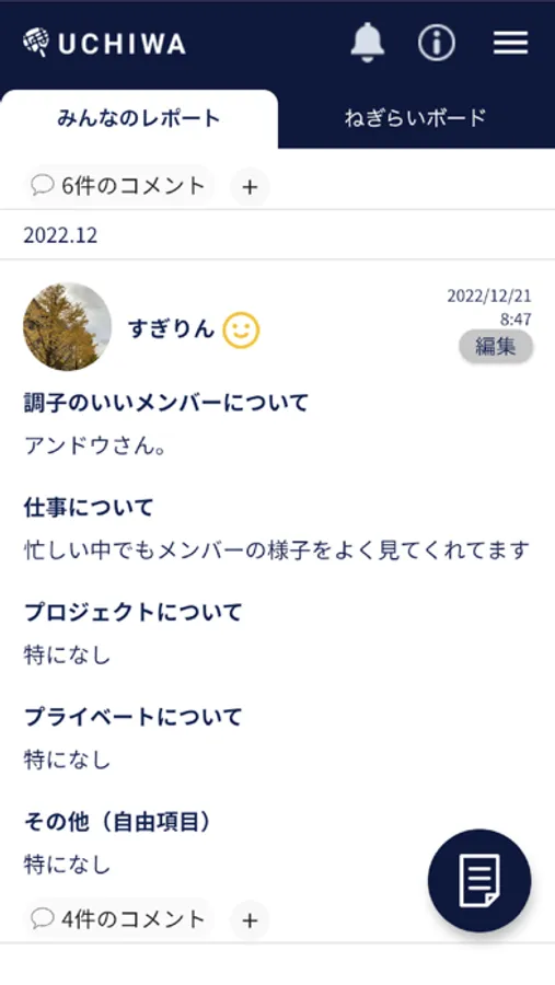 ・レポートを受けて「ねぎらい」の言葉を漏れなく送る