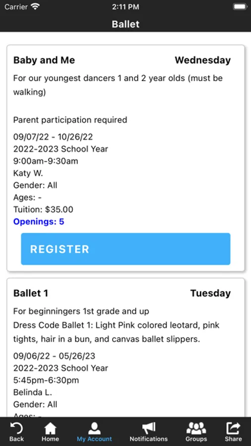 The WSD app allows you to manage your account with ease, register for classes, parties, and special events. You'll also receive important notifications about class changes, closings, registration openings, special announcements, and upcoming events.