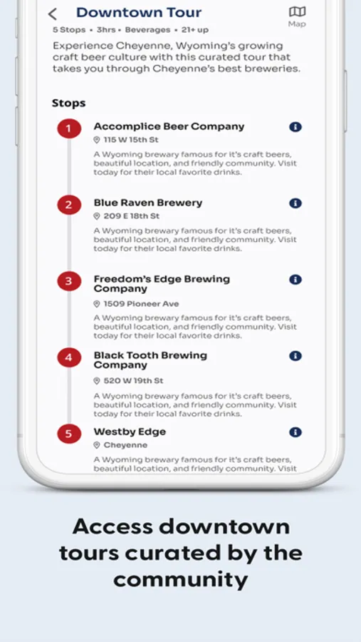 Download the free app to Discover Downtown Cheyenne and everything it has to offer! Cheyenne visitors and residents alike can browse the complete directory of downtown businesses, explore downtown’s growing arts district, take one of the many community curated tours, check out the calendar of downtown events, access exclusive downtown deals and more! Welcome to Downtown Cheyenne: What will you discover?