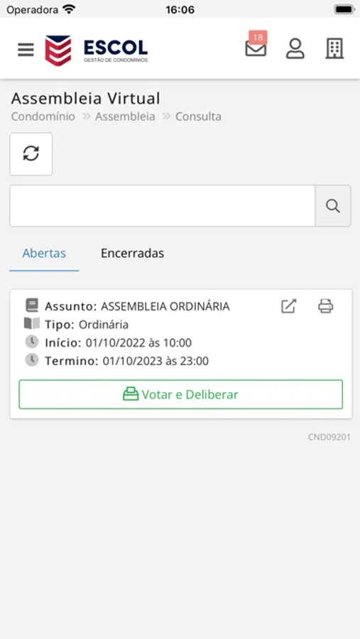Este aplicativo é exclusivo para usuários da ESCOL Condomínios.