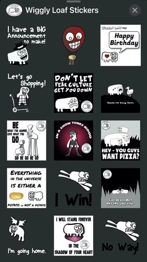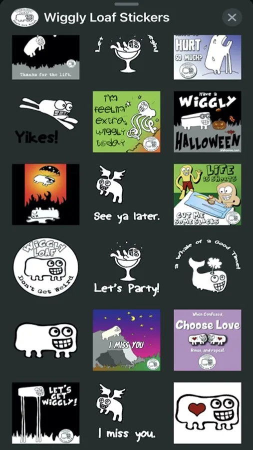 Wiggly Loaf stickers celebrates birthdays and holidays. They are uplifting messages that deal with insecurities, body image, and identity in a fun-loving format. Wiggly Loaf is the star of many chalkboard cartoons and mobile video games.