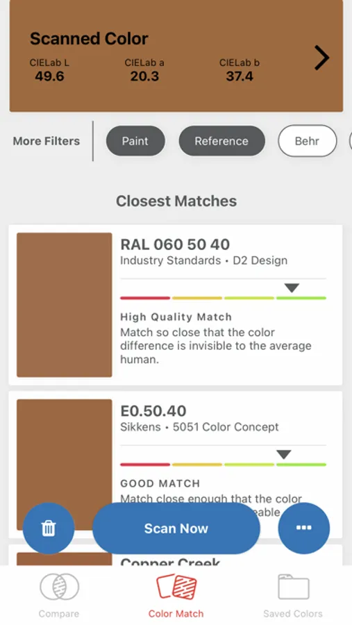 Scan color, find products that match, coordinate and complement. Color referencing, collecting, organizing and sharing has never been easier and more efficient.