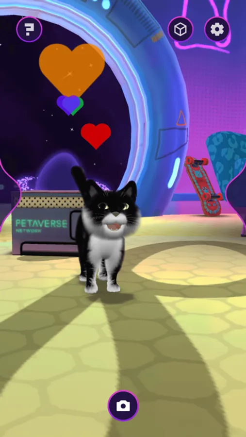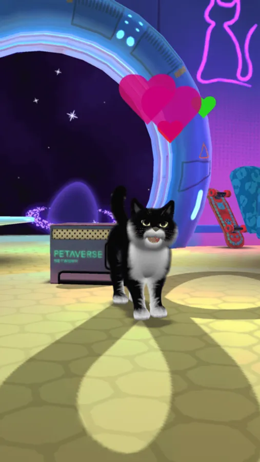Log into your Petaverse account to access your pet to name, stroke, play and bond with. Capture delightful moments and create shareable meme social media content with your unique digital pet. Even see what they looked like as a kitten!