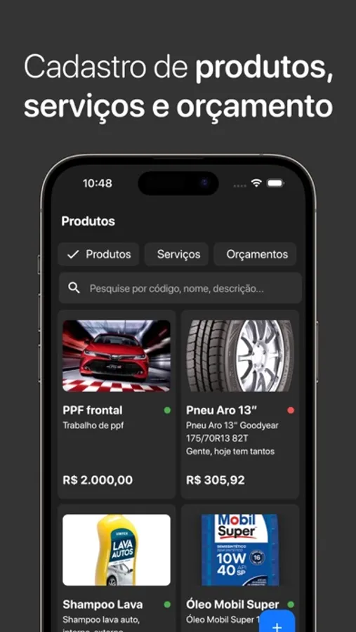 Cadastre produtos, serviços e orçamentos automotivos