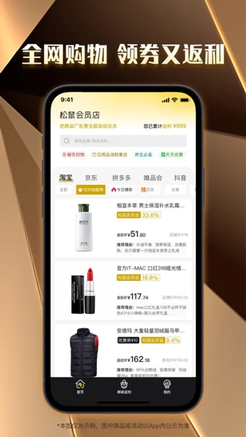 支持淘宝、淘特、拼多多、唯品会等数十家电商平台网购省钱,年度用户喜爱省钱购物 APP