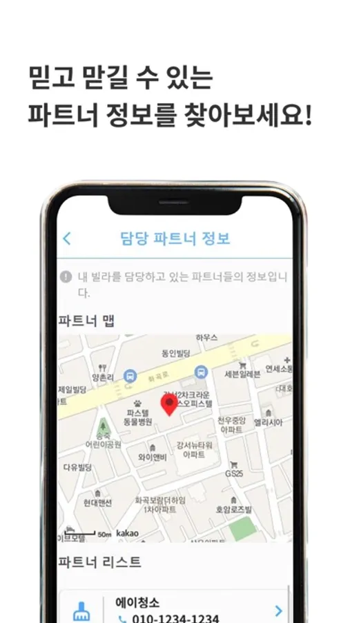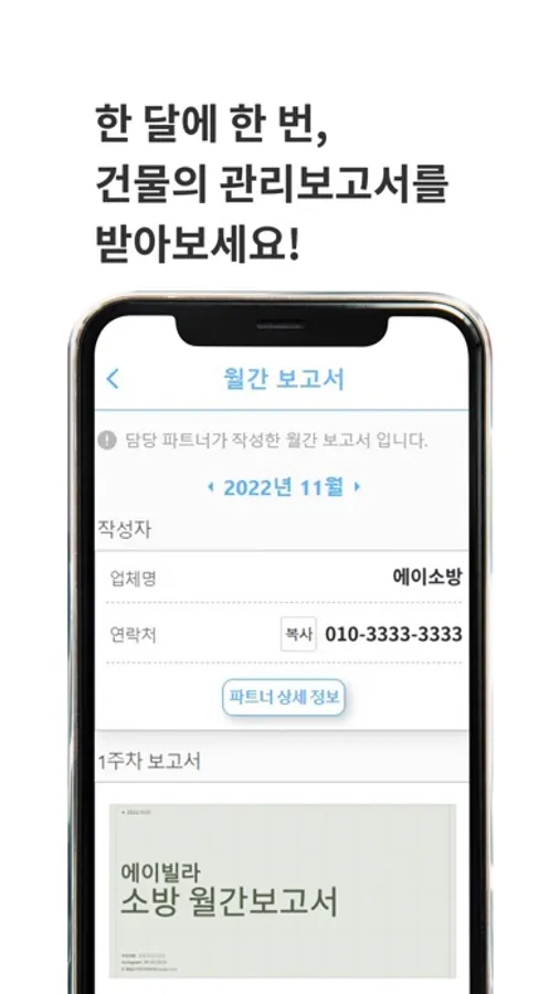 관리비 관리, 주차관리, 세입자정보, 월간 관리보고서, 긴급하자요청, 주변 파트너 찾기 등