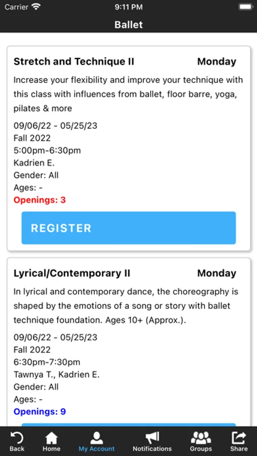The Image Dancing app allows families and students to manage their accounts with ease, register for classes, pay tuition, communicate with instructors, receive news and updates, and more. Image Dancing staff can also use the Image Dancing Portal app to manage the classes they instruct, take notes, record attendance, skills and development, and more. You'll also receive important notifications about class changes, closings, registration openings, special announcements, and upcoming events.