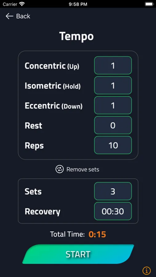 Tempo: Designed to provide the tempo and rest time for any resistance exercise. You will never have to count sets or reps again.