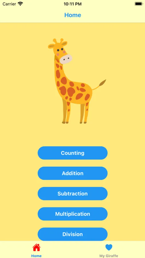 Giraffe Math is a children's educational app, where kids can learn, practice, and improve their math starting from counting all the way to division. The fundamentals of mathematics are important for every child, so in order to make learning easier, Giraffe Math creates a fun and colorful way for kids to practice.