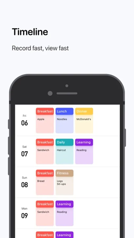- Sharing: Generate shareable daily, weekly, or monthly charts to share your life's moments with friends.