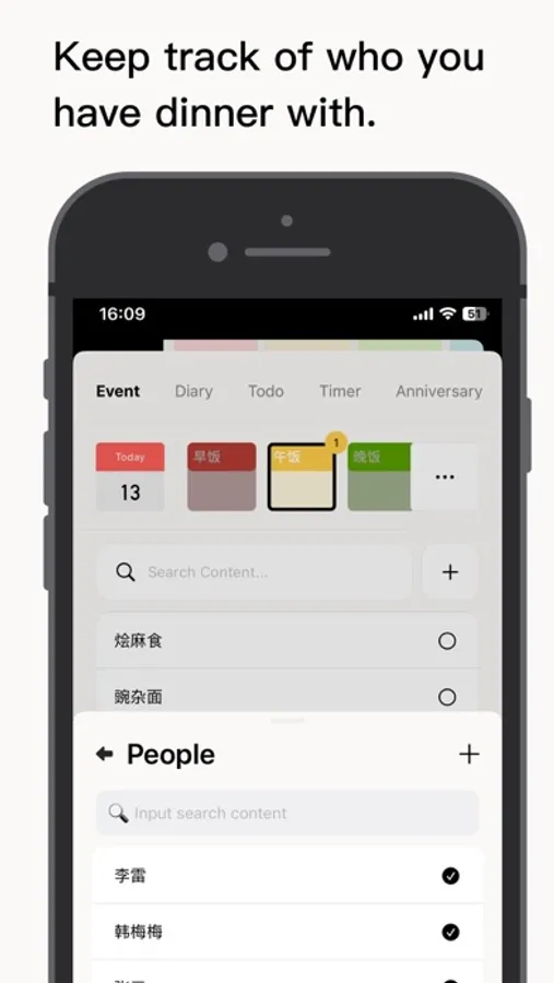 Food Tracking: You can set up breakfast, lunch, and dinner (or additional snack times) to record the foods you eat at different times of the day, including photos, descriptions, and locations. You can also note who you dined with, and use comments and tags to rate and evaluate each meal.
