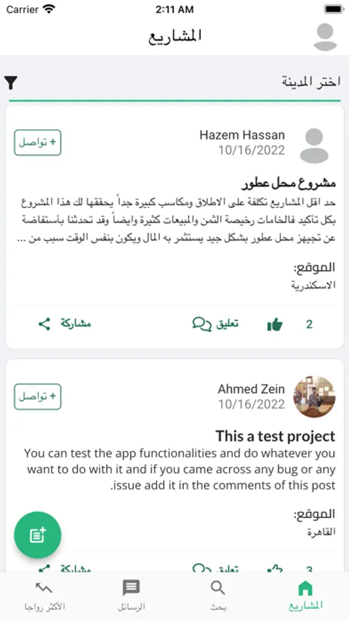 لرواد الأعمال الذين لديهم أفكار عظيمة ويبحثون عن شراكة أو تمويل ، ولإيجاد أفكار رائعة للمشاريع , شاركني هو المكان المناسب لمتابعة والتفاعل والمشاركة مع المشاريع المعروضة .