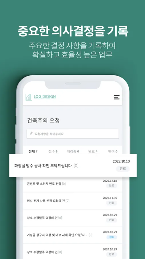 성공적인 건축&인테리어를 위한 통합 관리! 설계부터 시공까지의 모든 일정과 진행 전 과정을 로그디자인이 체계적이고 효율적으로 관리해드립니다.