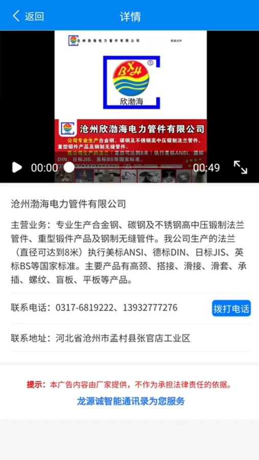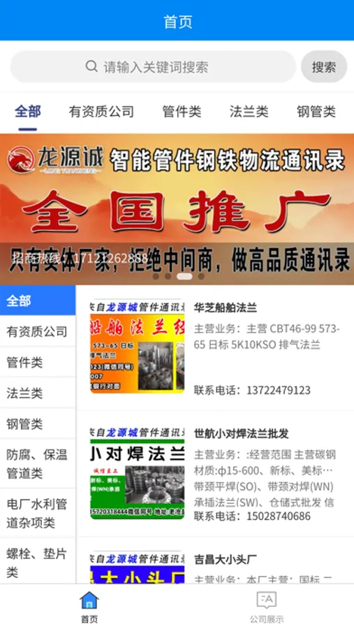 龙源诚管件通讯录平台是一款专门为管件行业企业打造的通讯录平台。该平台主要展示管件生产企业的名称、电话、地址、生产产品以及取得的各种资质,使其采购方可以通过软件快速查看企业。