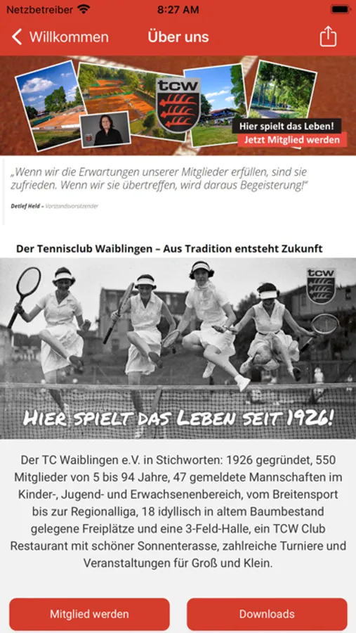 Der Tennisclub Waiblingen e.V. bietet mit dieser App Einblicke und Funktionen für Mitglieder, Sponsoren, Fans und Interessierte. Die App dient dem Austausch von Informationen und News rund um den Club und dem sportlichen Geschehen. Diese App ermöglicht es außerdem den Anwendern sich selbst aktiv einzubringen um bspw. Kontakte zu knüpfen oder an Umfragen teilzunehmen.