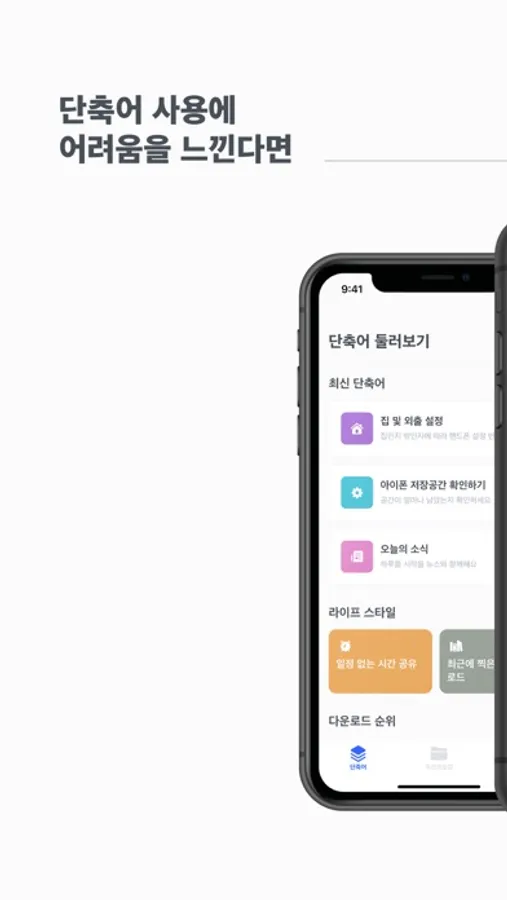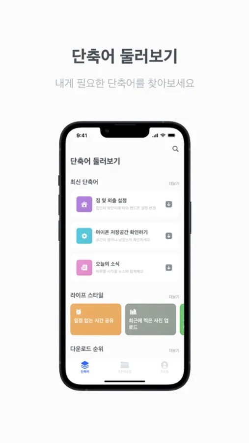 운영진과 사용자들이 올린 다양한 단축어와 추천 모음집을 둘러보고 마음에 드는 단축어를 다운로드받을 수 있어요.