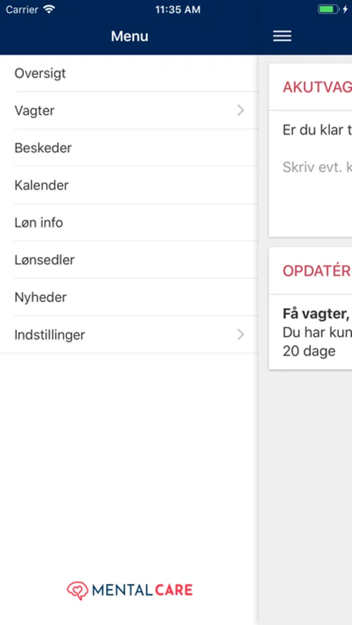 Med Mental Cares vikarapp får du nem og direkte adgang til dine vagter, din kalender og ledige vagter samt meget mere, der giver dig det nødvendige overblik mens du er på farten, uden at skulle logge på en browser.
