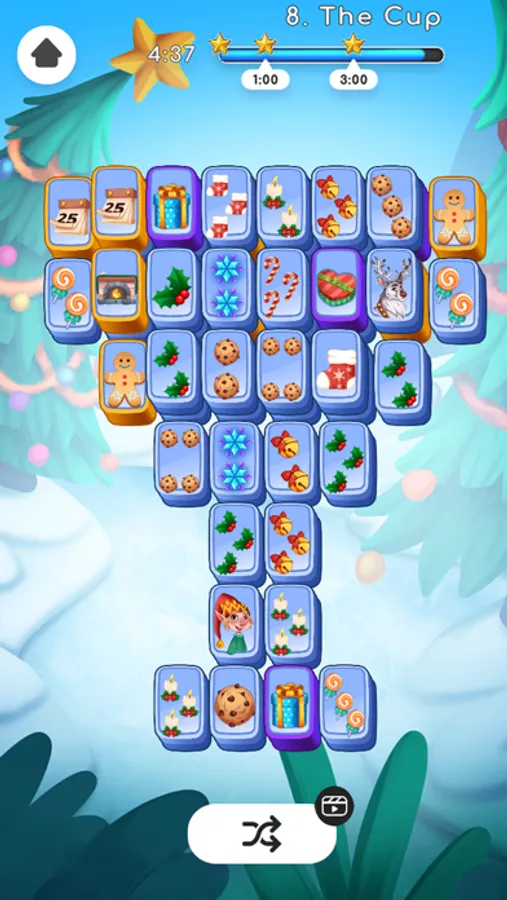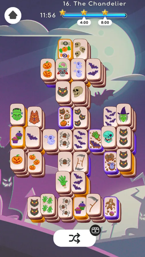The goal of Mahjong Solitaire is to find the pairs of tiles as quickly as possible. The faster you match the tiles, the more stars you get! With the stars you earn in each Mahjong level you can unlock amazing backgrounds and customize this clicker game to your liking. Play casual single player Mahjong and unlock the Halloween theme. You can also play free mahjong with Egypt tiles, make pairs of cards with Christmas illustrations, or match tiles with soccer pictures.