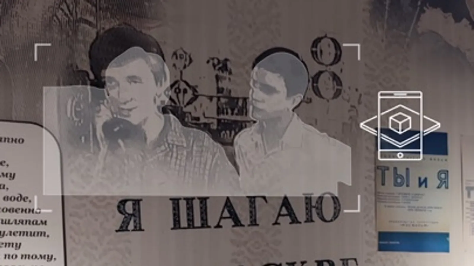 Только представьте, что из этой комнаты можно за одно мгновение перенестись прямо в 60-е годы! Почувствовать себя героем фильма «Я шагаю по Москве» поможет приложение дополненной реальности «Я иду, шагаю» AR. Нужен только телефон и стена с изображением Геннадия Фёдоровича.