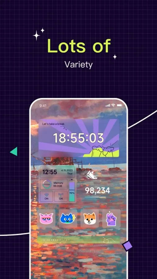Chinese style, two-dimensional, punk cyber, cool, soft and cute animals, cute and fresh... A variety of personalized styles are waiting for you to design! ! ! Come and create your own iScreen-desktop widget!