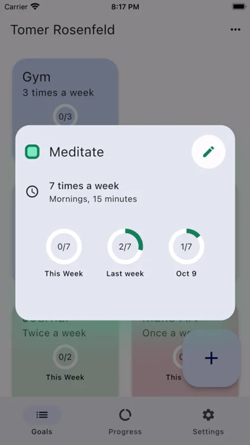 - Keep track of your goals progress with graphs, charts and notifications