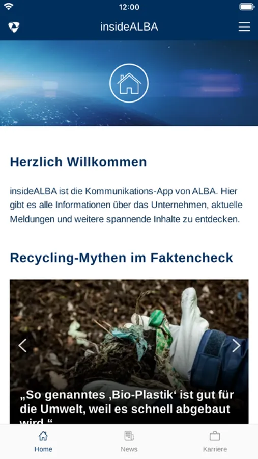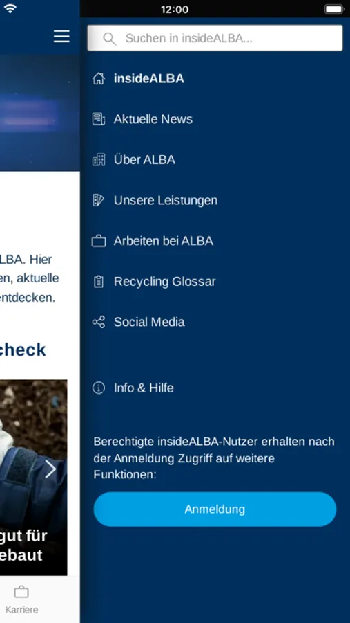Die insideALBA App ist die Kommunikations-App von ALBA für Partner, Kunden, Mitarbeitende und Interessierte. In der App finden Sie alle Informationen über das Unternehmen, aktuelle Meldungen und weitere spannende Inhalte.