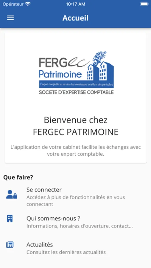 Because the world is changing, we offer you a handy application for managing your online account 7days/7 and 24h/24. This ease of use allows you anytime access to your documents, consult the news of the firm, or to gain visibility on various activities related to your record. We wish you a nice navigation!