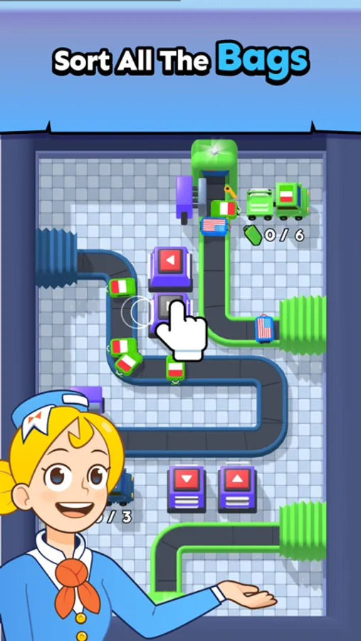 The bags have been mixed! And it’s your duty to sort them back up! sort each bag across the conveyor by using the advanced bag-sorting machines, enjoy some easy and fun puzzles on the fly! anytime! anywhere!