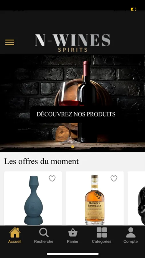 Découvrez les produits de N-Wines et commander directement de votre téléphone ! Spiritueux, Vins, Alcools, Champagnes, des produits d'exceptions !