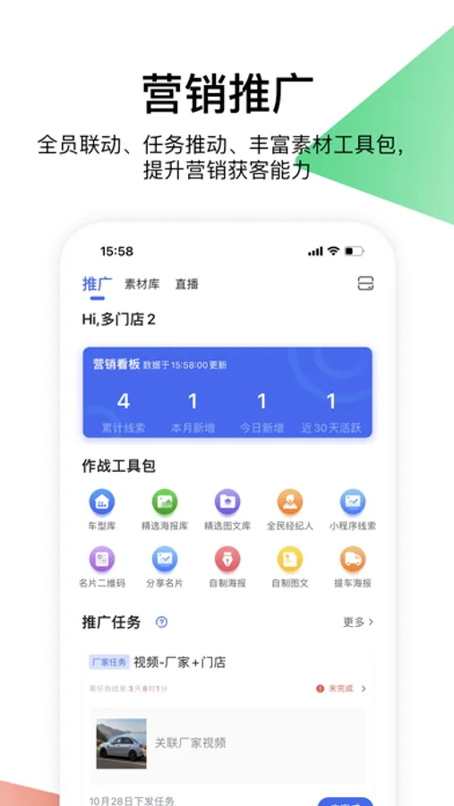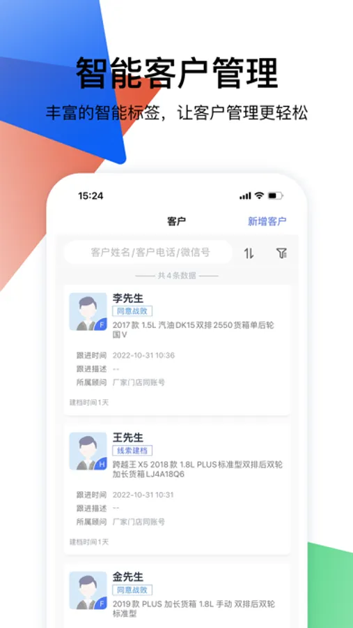 跨越行是全新打造的一款数字化营销移动APP,彻底革新汽车4S店从售前到售后的服务价值链,赋能员工更好连接客户,使之每个员工都是自洽的商业连接器,为汽车经销商和主机厂提供数字化基建的能力。