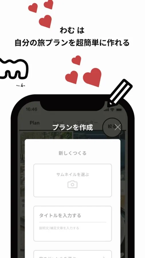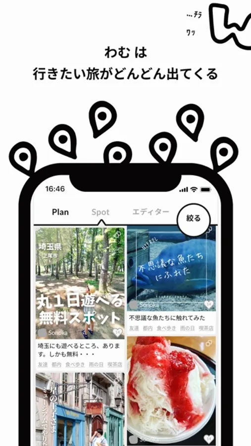 ・画像、文章、ジャンル、地図などを自由に組み合わせて、あなただけのプランやスポットを作れる!