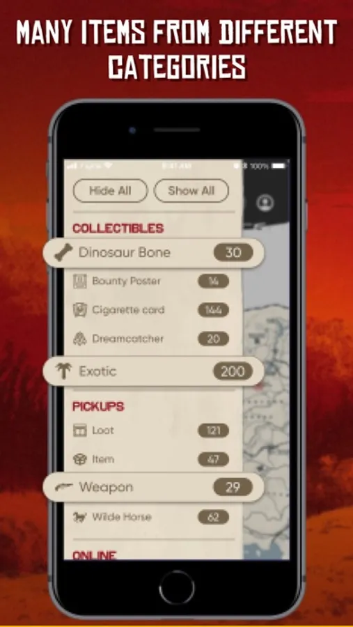 Cheats for Red Dead Redemption is an app that provides exclusive mods for the game. This companion app comes with an interactive treasure map with hundreds of treasure locations. It is now much easier to find what you are looking for. Immerse yourself in the world of adventure and complete special missions. The map of this cowboy game allows you to track your progress, mark a location as found, or add one yourself and track your collectibles.