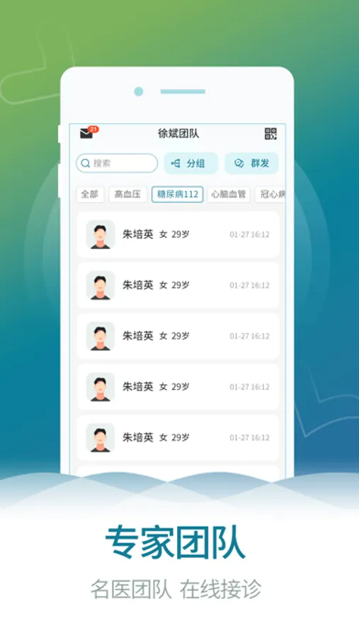 患者管理——医生可以对线上和线下报到患者进行分组管理,通过患教资料,问诊表等专业工具高效随访跟踪诊后患者病情,助礼医生诊后管理