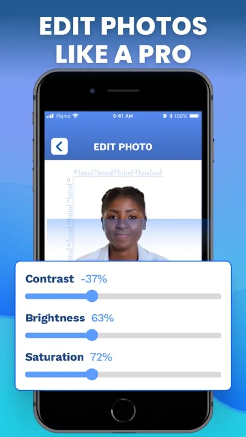 The passport photo maker makes it easy to format photos online. With this tool you have the option of printing it out on a printer or sharing the passport photo. You can use pictures from your gallery or take new ones; photo editing is also possible to correct saturation, brightness, and contrast. This editor will help resize photos to passport size. Looking for an app that can resize photos with its cropping tool and size editor? This is the app for that.