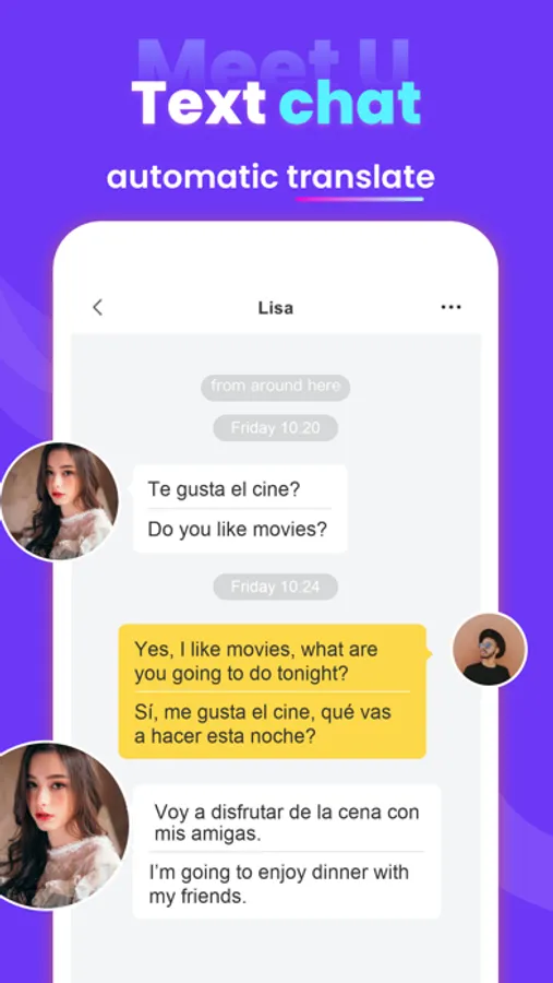 - Message translation assistant allows you to easily chat with people all over the world