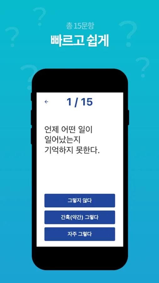 총 15문항, 언제 어디서나 쉽고 빠르게! 결과를 한눈에!
