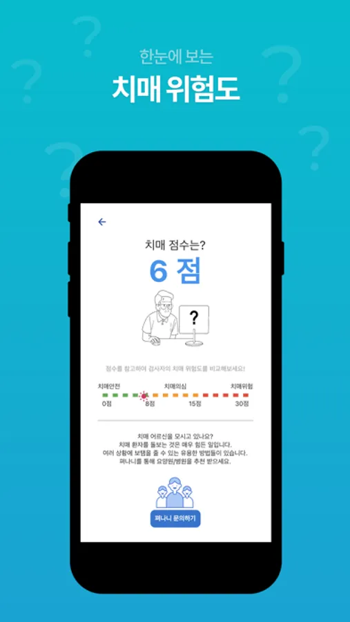 펴나니 치매진단 앱을 통해 치매 위험도를 확인해 보세요.