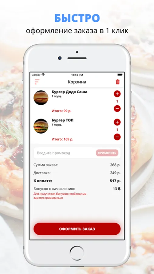 Скачивайте наше приложение, оформляйте заказ и наслаждайтесь любимой едой, где бы Вы ни были! Приятного аппетита!